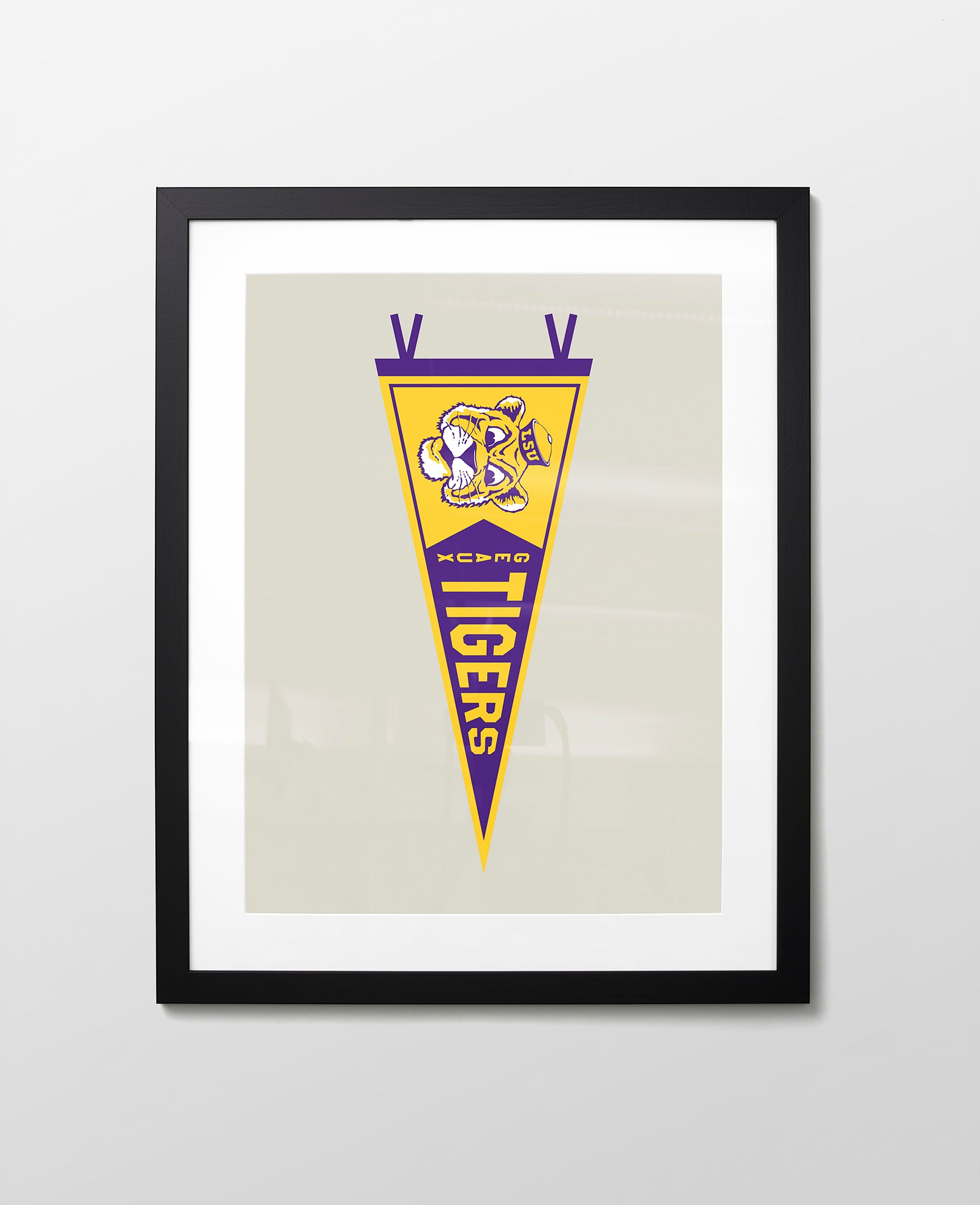 Inspired by vintage felt pennants, our classic design is anchored by a Fighting Tiger ready for game day. Perfect for the home or office, or under the blankets with you as you sleep. There’s no better way to flag your support for the Bayou Bengals.
