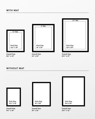 At Honored Press, the customer experience is our top priority from the moment you place your order to the day your framed artwork arrives. Once shipped, you'll get a tracking email so you know exactly when to expect your order. Every frame is custom-made in 5-7 business days. Transit times varies based on location. All frames are shipped from our factory located in Connecticut. Each package is carefully designed to ensure that every frame arrives in perfect condition. Our custom-fit boxes are tailored to each frame size, with an inner cardboard wing tray that secures the frame and prevents movement during transit. This tray is then placed inside a slightly larger outer box, adding an extra layer of protection for a safe and secure delivery.