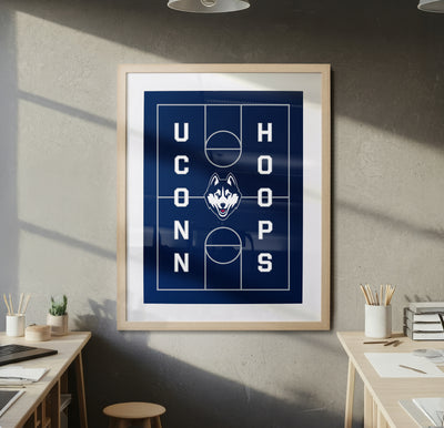 This is where legends play. Our UConn Hoops design brings the energy of the court to your wall, featuring the fierce Husky logo front and center. Every line and letter captures the feeling of game day, loud, proud, and unstoppable. Hang it in your home or office and show everyone that Husky basketball is more than a sport, it is a statement. And if there happens to be a Nerf hoop nearby, you will be happy to prove it—poster in hand to witness the moment.