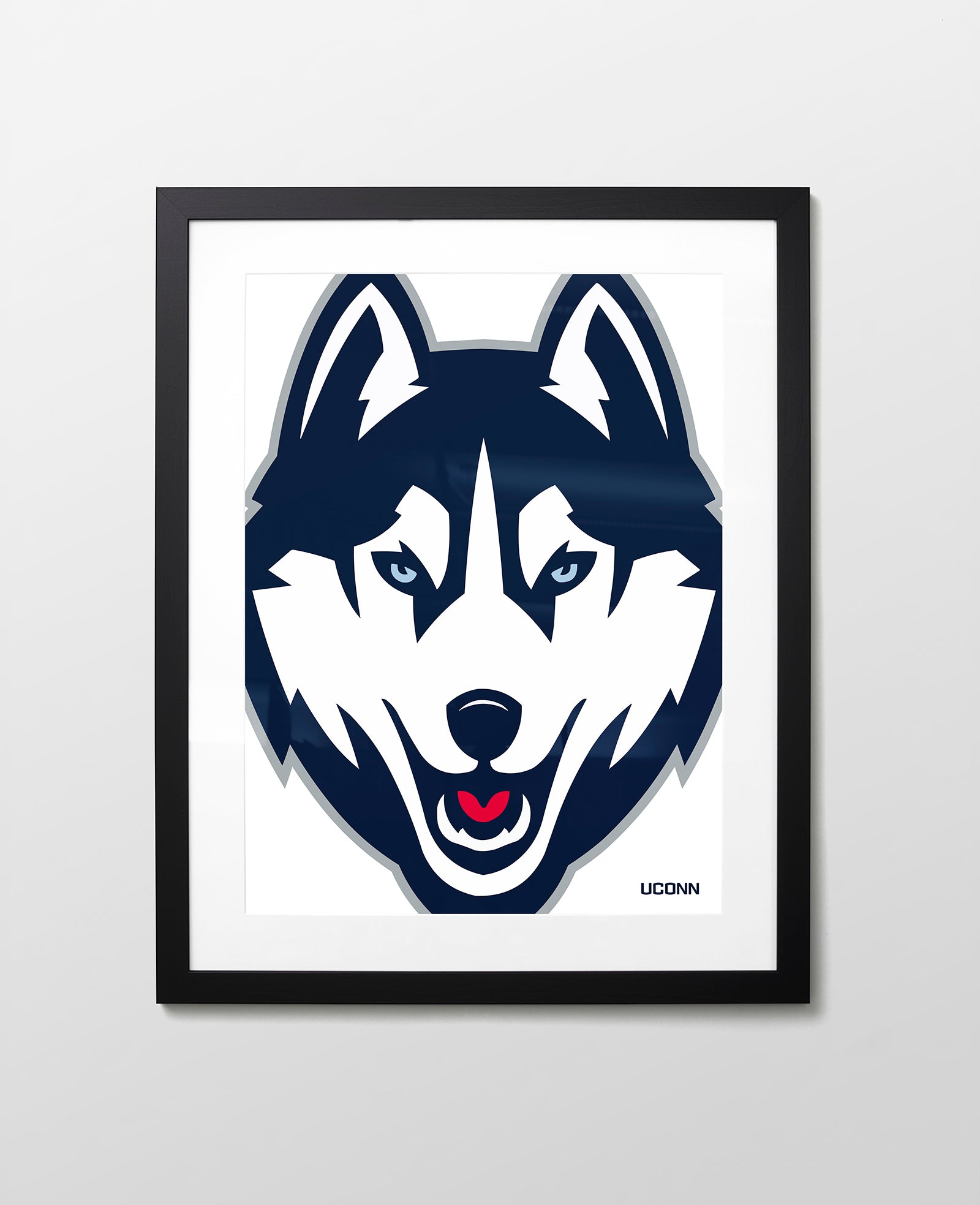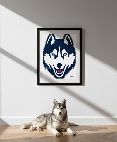 Strong, sharp, and unmistakably UConn. This design features the iconic Husky logo in bold navy and white, symbolizing the determination and pride that define the program. Fierce but loyal, it captures the true spirit of the Huskies—a mark recognized wherever champions compete.
