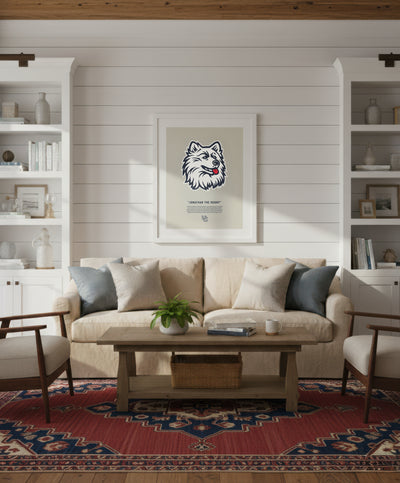 Every legend starts somewhere. In January 1935, UConn introduced its very first mascot, “Jonathan the Husky,” described as “an ingratiating rascal with big feet, cocked ears, and a warm-hearted puppy body.” This design pays tribute to that spirited debut, celebrating the loyal companion who became the face of UConn pride. A timeless salute to the mascot that started it all.
